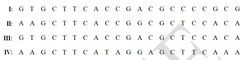 48. (2 points) Following are four sequences taken from HIV RNA such that: