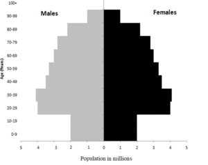 52. (2 points) Figure shows the age distribution for human population for the country X.