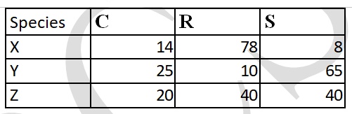 Based on the graph, choose from the list of options regarding the type of animal and fill in the respective blanks with the correct option number. Only a completely correct answer for each blank will be awarded points.
