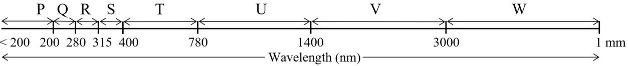 A few biologically important properties are listed below. Assign the correct range/s of the spectrum to each of them and fill in the blanks with the respective alphabet/s (P to W).